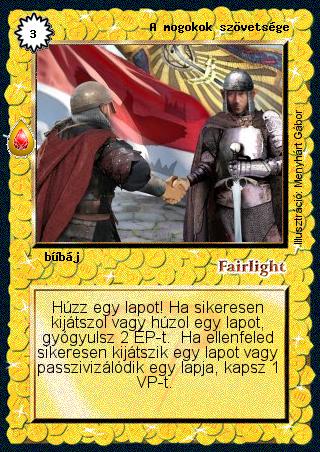 Szöveg: Húzz egy lapot! Ha sikeresen kijátszol vagy húzol egy lapot, gyógyulsz 2 ÉP-t. Ha ellenfeled sikeresen kijátszik egy lapot vagy passzivizálódik egy lapja, kapsz 1 VP-t.