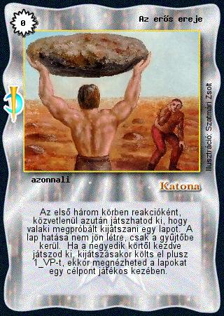 Kiadás: Sötét kor, Alappakli, 8. kiadás, Védnök 2023 Gyakoriság: ritka Lapszín (isten): Katona Klán Típus: azonnali Szöveg: Az első három körben reakcióként, közvetlenül azután játszhatod ki, hogy valaki megpróbált kijátszani egy lapot. A lap hatása nem jön létre, csak a gyűjtőbe kerül. Ha a negyedik körtől kezdve játszod ki, kijátszásakor költs el plusz 1 VP-t, ekkor megnézheted a lapokat egy célpont játékos kezében. Illusztráció: Szatmári Zsolt