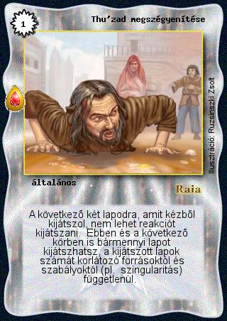 | (AK147) Nem játszhatok ki egy vízió lapot sokszor egy körben, Thu’zad megszégyenítése után. A Thu’zad megszégyenítése felülírja azokat a szabályokat, amik a lapok kijátszásának számát korlátozzák, tehát elvileg kijátszhatnék, mi azonban ezt túl erősnek gondoljuk, ezért a Thu’zad megszégyenítése nem működik a víziókra. Más esetekben (pl. nekron szabály) nem érezzük, hogy szükséges lenne a lapot korlátozni. | | Thu’zad megszégyenítése nem "hat" egy háló képességgel bíró lapra (hiszen a háló a többi játékosra továbbra is vonatkozik), hanem ignorálja a háló szabályt. Így egy követő, szabálylap, vagy forrásimmunis háló képességét is. |